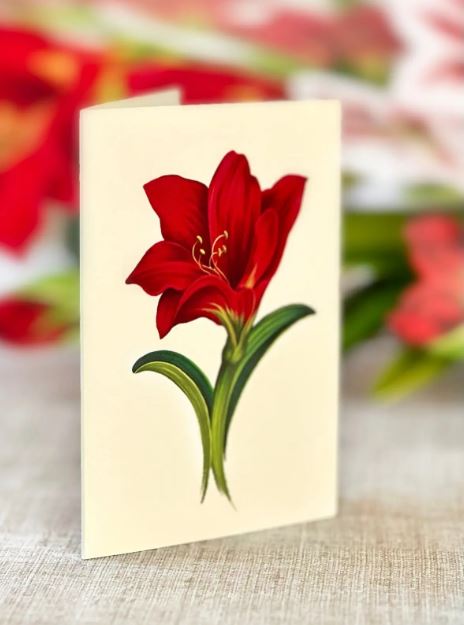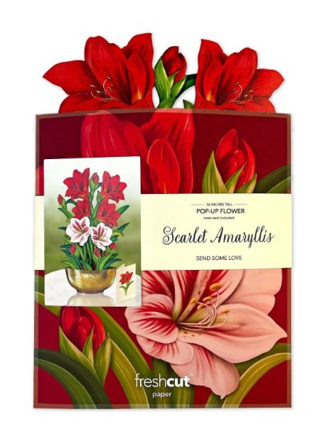 Make your season merry and bright with our dazzling Scarlet Amaryllis bouquet! Standing at 16 inches tall, this captivating symphony of velvety red and candy cane striped blossoms will be the main event in any home or office. Displayed in a luxurious hammered gold bowl, your bouquet is shipped flat with a matching note card and festive envelope for gifting made easy! 10"w x 16"h