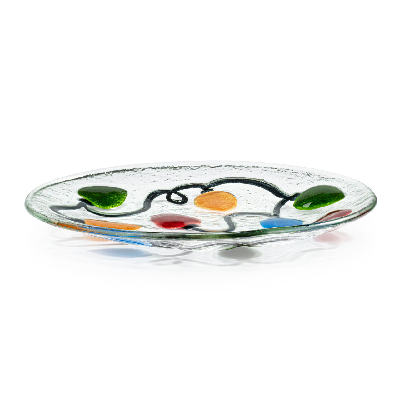 Entertain or just make life a special occasion with the yellow and blue Holiday Lights Mini Round Plate. A beautiful way to add ambience to your home! Fused Glass. 6" diameter.
