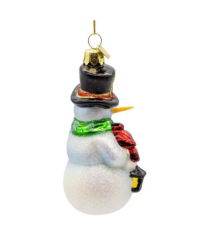 Add a touch of heartwarming winter charm to your holiday décor with Kurt Adler's Noble Gems™ Glass Snowman with Cardinals & Lantern Ornament. This beautifully crafted ornament features a joyful snowman holding a glowing lantern, with bright red cardinals perched lovingly on his arms and hat. Dressed in a cozy scarf and hat, the snowman is hand-painted with intricate details and shimmering glitter accents that capture the magic of the season. Made from high-quality glass, this ornament reflects the warm glow of your Christmas tree lights, creating a serene and festive atmosphere.