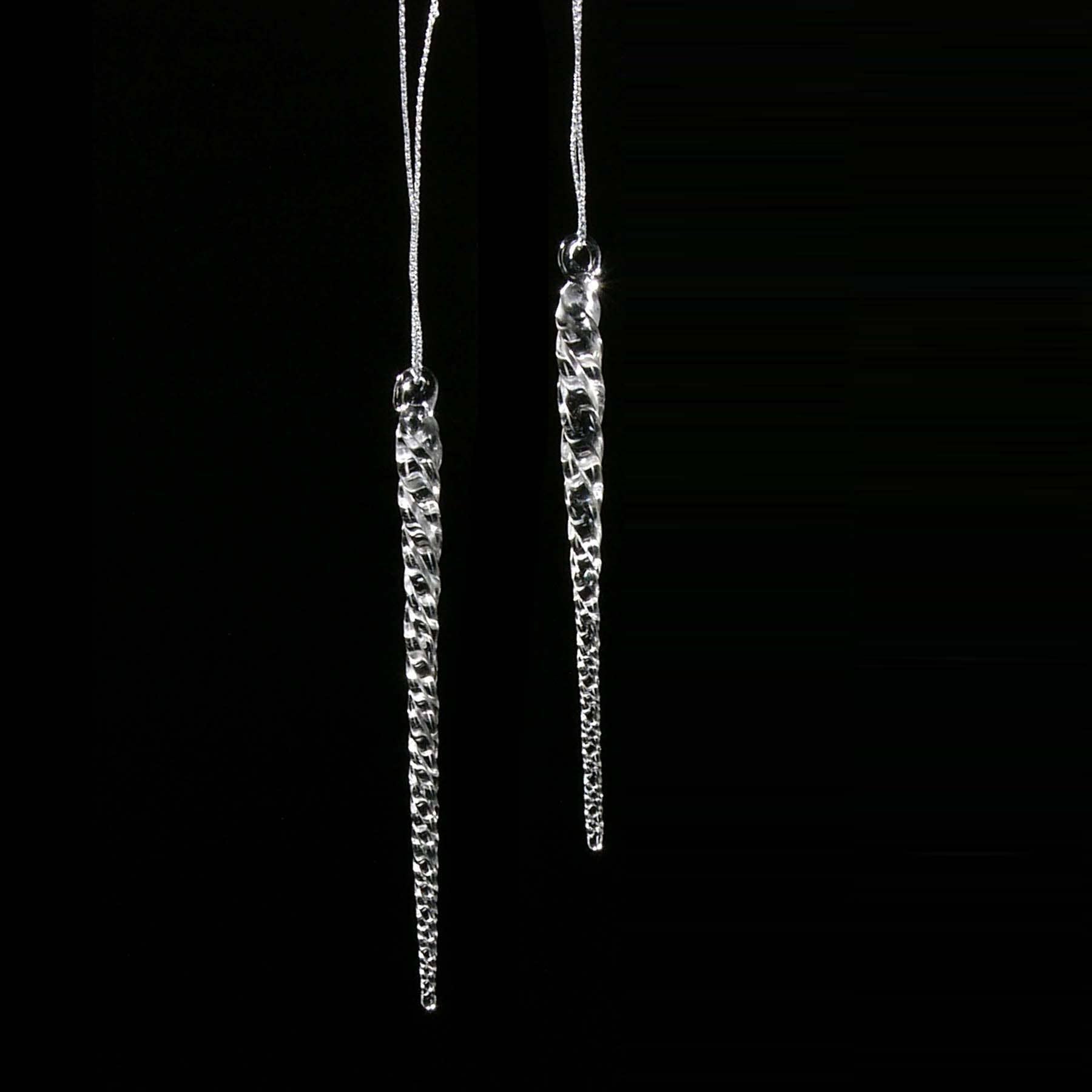 Our 5.25" Twisted Clear Glass Icicles are a unique addition to your holiday decor. Made by Kurt S. Adler, Inc., a trusted name in holiday decorations for over 75 years, these ornaments capture the beauty of winter. The set includes 12 intricately crafted icicles. These timeless pieces can be hung on your Christmas tree, wreath, or garland, adding a touch of icy elegance to your seasonal decor. Sold per Icicle (Set of 12 is $18.00)