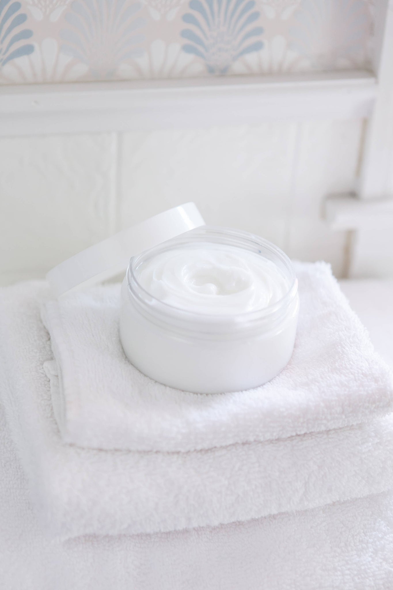Our body butter is a perfect moisturizer for after shower, shaving, sun, or as needed! It is lightweight and soaks in quickly. A little goes a long way and will leave you soft and smooth. Our star ingredients of shea butter, organic sunflower oil and organic aloe vera is nourishing and great for all types of skin. Our body butter is thicker than traditional lotion and extra moisturizing!