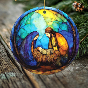 Peeping Tom's Cottage - The Holy Family in Stained Glass – Nativity Ornament – Christmas 2025