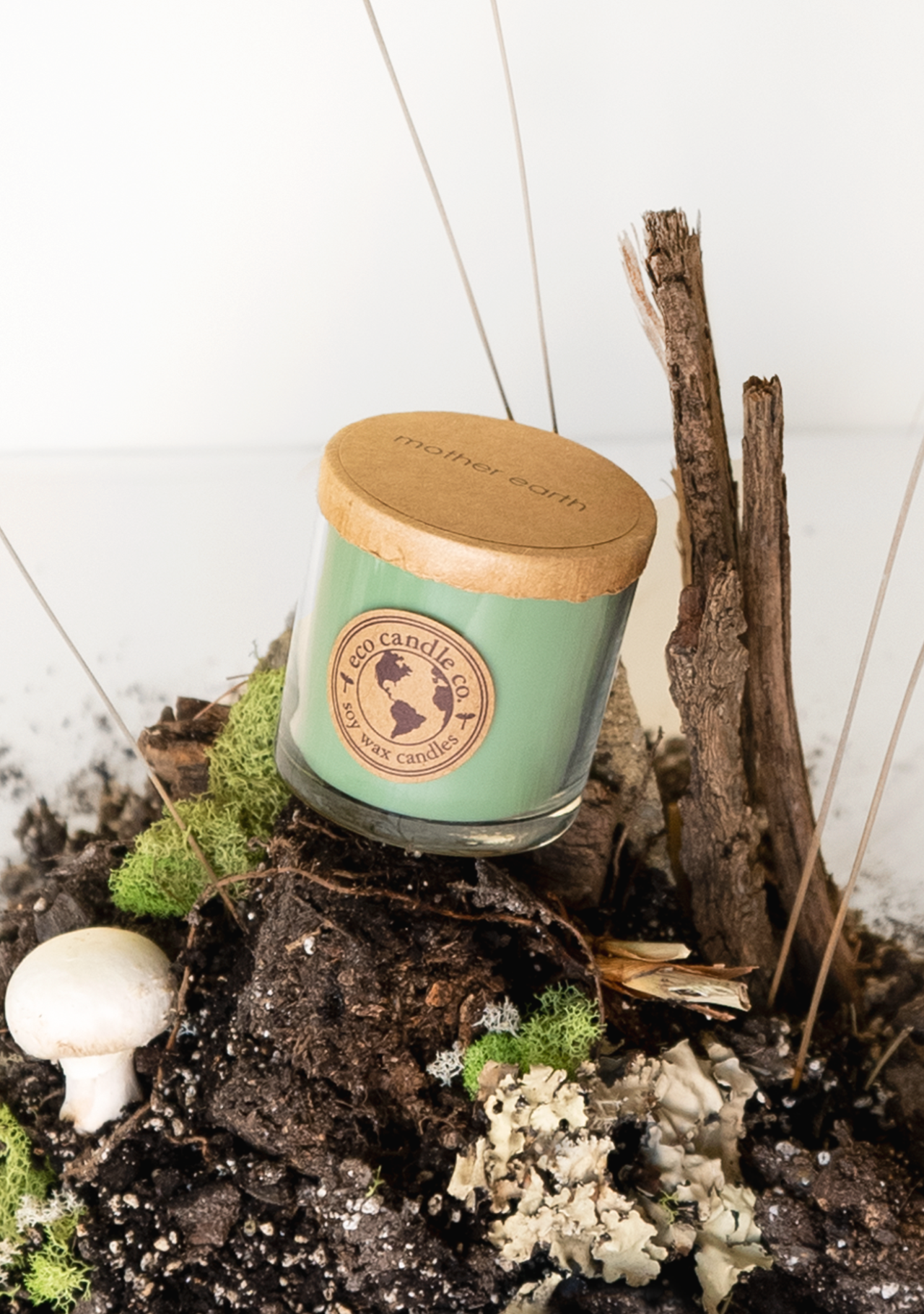 6 ounces of eco-goodness packed into a recycled glass jar with a kraft label and paper lid.